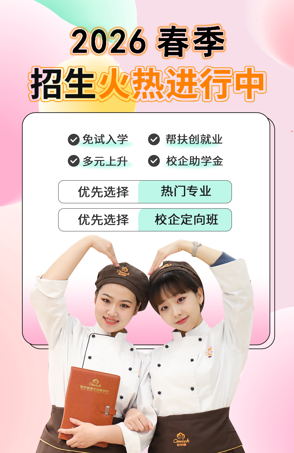 欧米奇,英文名OMICK,取自“Only modification is chef's key”,以“大师之道,精益求精”的西点西餐精神作为自身信仰,立志于创办我国正统的西点西餐培训学校,并以此影响中国未来的西点西餐教育。
